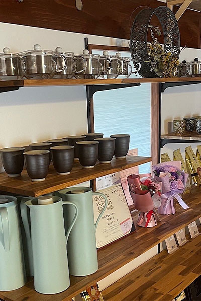 お茶ソムリエとは、⽇本茶に関する専⾨的な知識を持った⽇本茶インストラクターのこと。スペシャリストが急須を使ってじっくり淹れるお茶はひと⼿間かかりますが、むげんでは、想いのこもった⽇本茶を提供しています。